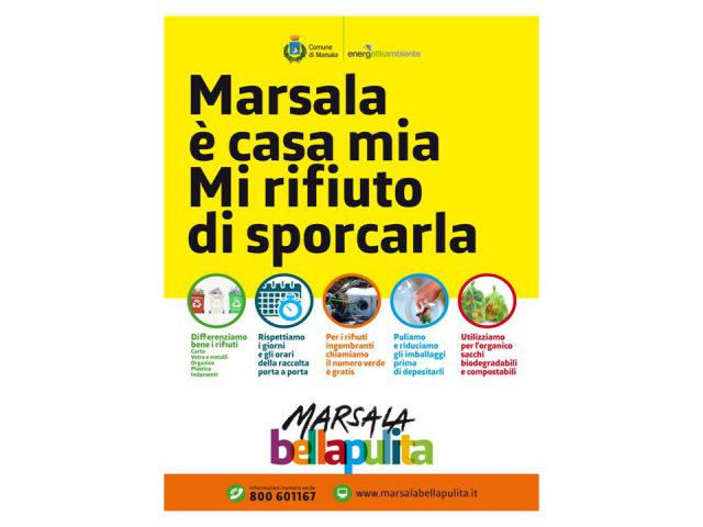 Dal prossimo 1° febbraio sarà avviato a Marsala il nuovo sistema di raccolta differenziata dei rifiuti, secondo il calendario 2019 distribuito in queste ultime settimane e consultabile nel sito: www.marsalabellapulita.it.