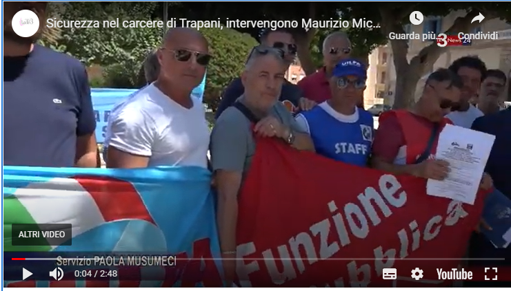La UILPA Polizia Penitenziaria e la FP GCIL ieri hanno protestato dinanzi alla Prefettura per chiedere maggiore sicurezza all’interno del carcere di Trapani. Il Prefetto Filippina Cocuzza  ha garantito loro il suo intervento sulla delicata questione. Presenti alla manifestazione anche il coordinatore provinciale di Fratelli d’Italia avv. Maurizio Miceli e il deputato regionale del Partito Democratico on Dario Safina, sentiamo….