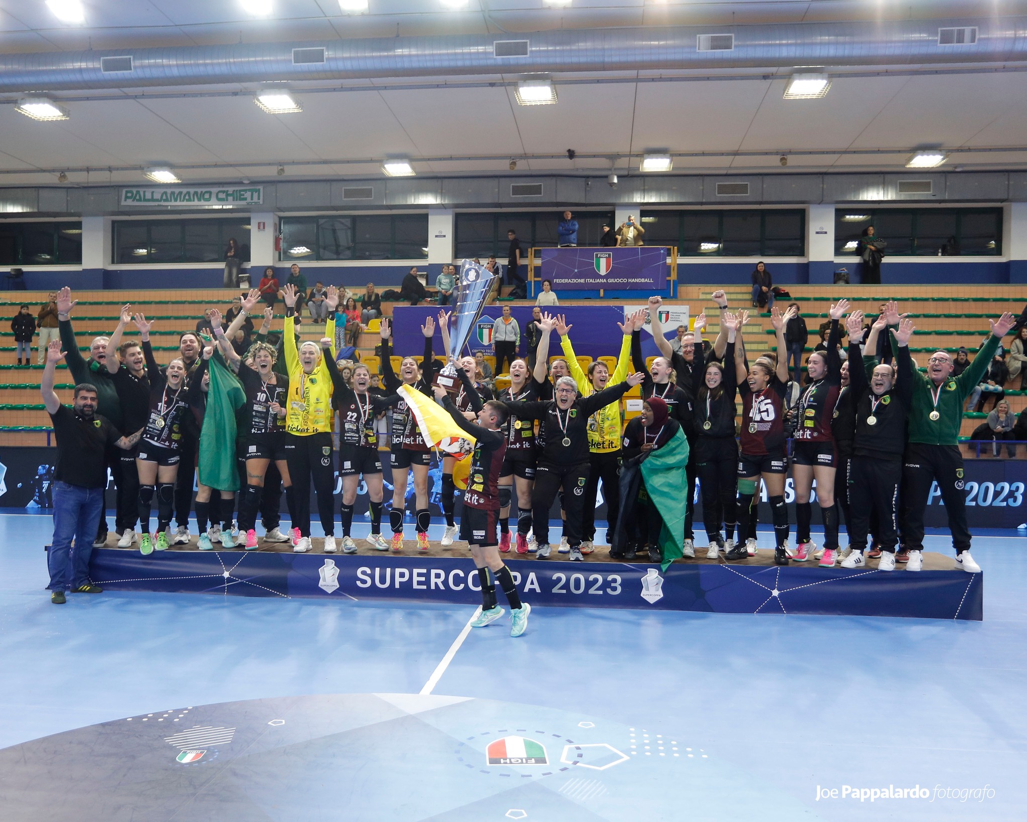 L’Ac Life Style Erice vince la Supercoppa, battendo in finale la Jomi Salerno con il risultato finale di 22 a 29. Per Erice si tratta del secondo trofeo della propria storia, dopo la vittoria nello scorso anno in Coppa Italia. Una finale perfetta giocata dalle ericine. Grande fluidità nel gioco d’attacco, compattezza e unità in difesa, vincendo con merito il primo trofeo della stagione. PRIMO TEMPO: Avvio di gioco equilibrato, in cui Erice si affida alla forza di Tarbuch, che pareggia le ostilità sul 5 pari (11’). Ekoh e Nkou trovano il primo doppio vantaggio della partita, ma Salerno pareggia nuovamente (14’ 7-7). Forte intensità ed equilibrio che si mantengono fino all’allungo nelle ultime battute, che hanno portato Erice avanti sul 10 a 13. SECONDO TEMPO: Dopo l’intervallo, tante reti in poco tempo, con Erice che mantiene il vantaggio sul 16 a 19 (39’). Erice allarga il gioco, Pugliara trova le reti e costringe coach Ancona al time-out sul 17 a 22 (43’). Salerno prova a mischiare le difese miste, ma Erice gestisce il vantaggio sul 20 a 25 (52’). Il cronometro diventa il migliore amico di Erice, che mantiene la giusta lucidità e vince la Supercoppa con il risultato finale di 22 a 29.