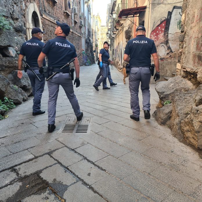 Controlli della Polizia di Stato nelle zone del centro di Catania.