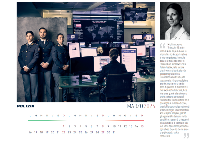 Un complesso monumentale di straordinaria bellezza quello scelto dalla Polizia di Stato per presentare oggi il nuovo calendario 2026 alle ore 16.00: le terme di Diocleziano a Roma. Uniche al mondo per grandezza e conservazione hanno ospitato questo pomeriggio l’importante ed ormai consueto evento che ha visto la partecipazione del Ministro dell’Interno, Matteo Piantedosi e del Capo della Polizia – Direttore Generale della Pubblica Sicurezza, Prefetto Vittorio Pisani.Gli scatti fotografici per il 2026 sono stati realizzati da Settimio Benedusi e Guido Stazzoni, fondatori del collettivo Ricordi Stampati, esperienza nata nel 2018 con l’obiettivo di riportare l’antico privilegio del ritratto nell’uso facile, comune, inclusivo e democratico. Una narrazione che quest’anno si articola su diversi piani: da un lato le fotografie di gruppo, dall’altro il ritratto in bianco e nero di una singola persona che di quel gruppo fa parte e che in poche righe racconta aspetti della propria vita, mettendo a fattor comune esperienze e aspirazioni. L’edizione 2026 vuole far emergere l’umanità dietro la divisa, il punto d’incontro tra identità professionale e vita personale, tra squadra da una parte e singolo dall’altra, elementi, questi, che si completano e si sostengono a vicenda. Da questa armonia trae forza il lavoro della Polizia di Stato: un impegno condiviso frutto del contributo di ogni singolo operatore. C’è la storia di Concetta ispettore all’aeroporto di Malpensa e mamma di Gabriele che con passione e dedizione ha trovato il giusto equilibrio per dare sempre il massimo sia a casa che a lavoro; c’è poi Mauro prossimo al pensionamento che sognava di fare il polizotto fin da bambino e che oggi è felice ed orgogliosi di esserci riuscito; poi c’è la storia di Julia atleta paralimpica tesserata fiamme oro gruppo sportivo della Polizia di Stato che grazie alla scherma ha trovato la forza di continuare a sorridere e a credere nei sogni; e poi c’è la storia di Medy come lo chiamano gli amici bengalese nato a Mantova per il quale la divisa rappresenta il riscatto, lo strumento per servire il suo amato Paese l’Italia, la possibilità di dedicarsi agli altri e di servire il prossimo.Queste sono solo alcune delle storie raccontate nel nuovo calendario della Polizia di Stato che anche quest’anno rinnova il suo impegno a favore di iniziative benefiche destinando parte del ricavato della vendita rispettivamente: al progetto di solidarietà UNICEF “Zambia”, a difesa del diritto all’acqua di tutti, in particolare dei bambini ed al Piano “Marco Valerio” che sostiene i figli dei dipendenti della Polizia di Stato affetti da patologie gravi e croniche. L’evento condotto dalla giornalista Laura Chimenti, ha visto la partecipazione della direttrice del Museo Archeologico romano Terme di Diocleziano Dott.ssa Federica Rinaldi, del presidente Unicef Italia Dott. Nicola Graziano, dell’ambasciatore Unicef Gabriele Corsi e di illustri personalità del mondo della cultura e dello spettacolo, tra cui Federico Palmaroli in arte Osho, dell’attore Pierpaolo Spollon e dell’attrice Paola Minaccioni. Sarà possibile, a partire dal 17 novembre, acquistare il Calendario 2026 sulla piattaforma Amazon. Per maggiori informazioni è possibile visitare il sito ufficiale https://www.poliziadistato.it/