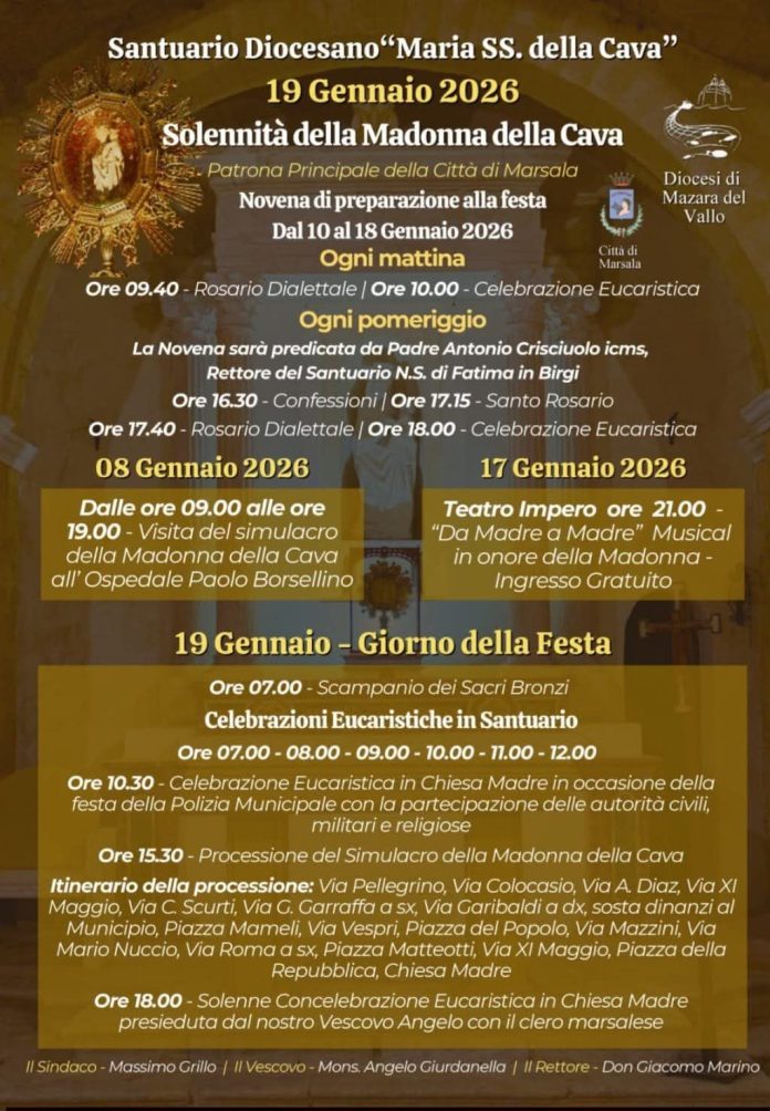 Per la festività del Santa Patrona “Madonna della Cava” che ricorre a Marsala lunedì prossimo, 19 gennaio, l’Amministrazione comunale ha disposto la chiusura del Cimitero. E ciò, tenuto conto che nelle giornate di festa si riduce notevolmente l’afflusso di pubblico presso il locale Cimitero, a maggior ragione se precedute da sabato e domenica (come in questa occasione). Saranno assicurati i servizi in reperibilità, consentendo l’accesso esclusivamente per il deposito delle salme. Con lo stesso provvedimento sindacale, inoltre, è stata disposta la chiusura di Villa Cavallotti, sia nella giornata del 19 che del 20 gennaio, alla luce del rischio di un’allerta meteo già segnalata – soprattutto per martedì prossimo – che, pertanto, comporta l’esigenza di adottare tale misura precauzionale a tutela della sicurezza pubblica e privata.