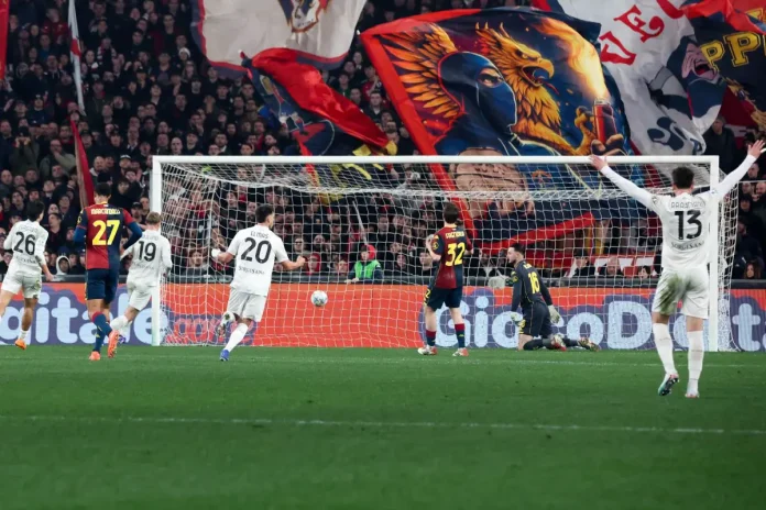 Pronti via e Buongiorno sbaglia un retropassaggio per Meret, che stende Vitinha in area di rigore: Massa, dopo una revisione Var, conferma la decisione di assegnare il penalty. Ruslan Malinovskyi si presenta sul dischetto e spiazza Meret, portando in vantaggio i rossoblù di mister De Rossi. I campioni d’Italia provano a riorganizzarsi e, dopo una fase di studio, al 20′ agguantano il pareggio con Rasmus Hojlund, abile nel realizzare il tap-in vincente dopo la corta respinta di Bijlow. Neanche il tempo di metabolizzare l’1-1 per i padroni di casa, che il Napoli firma la rete del sorpasso pochi secondi più tardi: Scott McTominay scarica uno splendido destro dalla distanza, che non lascia scampo al portiere avversario.