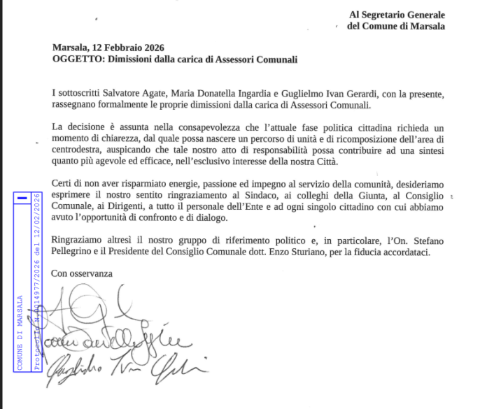 Elezioni politiche a Marsala. E’ ufficiale, si sono dimessi gli assessori Salvatore Agate, Donatella Ingardia e Ivan Gerardi