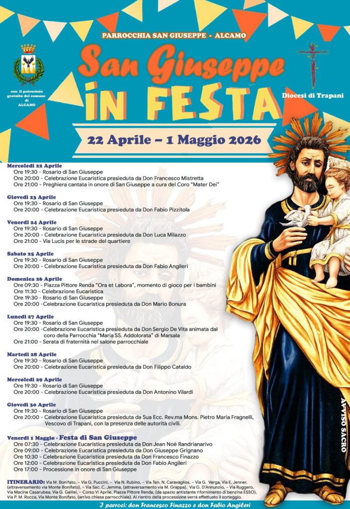 Ad Alcamo, la comunità parrocchiale di San Giuseppe Lavoratore si stringerà attorno al proprio Patrono con solenni celebrazioni eucaristiche e la tradizionale processione, simbolo di una Chiesa che cammina al fianco di chi, ogni giorno, affronta le sfide del mondo occupazionale. A Custonaci nella frazione Sperone, la devozione si fa ancora più intima e legata alla terra. I riti religiosi saranno accompagnati da momenti di condivisione fraterna, celebrando San Giuseppe come protettore delle famiglie e dei lavoratori rurali.